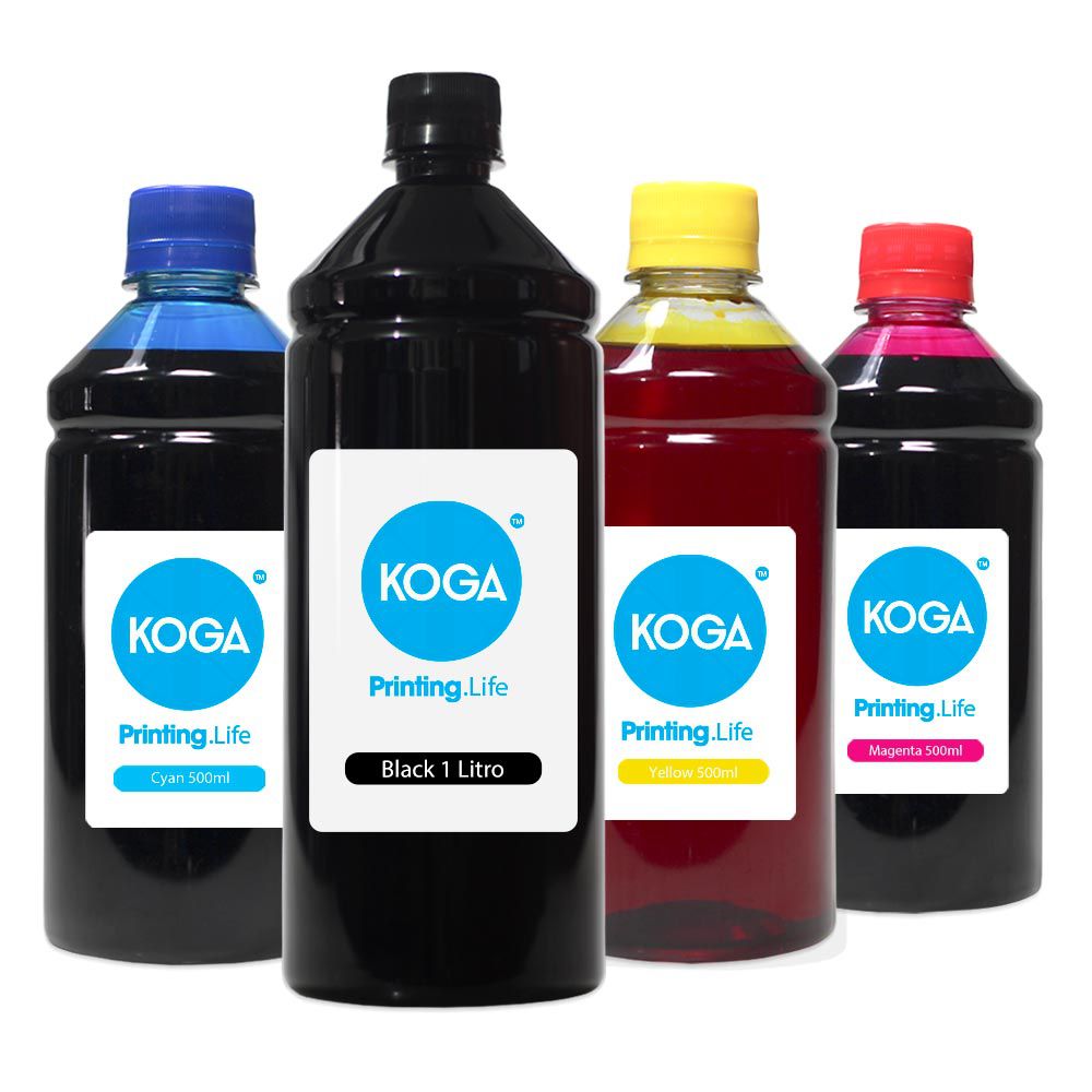 Saiba mais sobre o Kit 4 Tintas Epson L5191 Black 1 Litro Coloridas 500ml Koga: