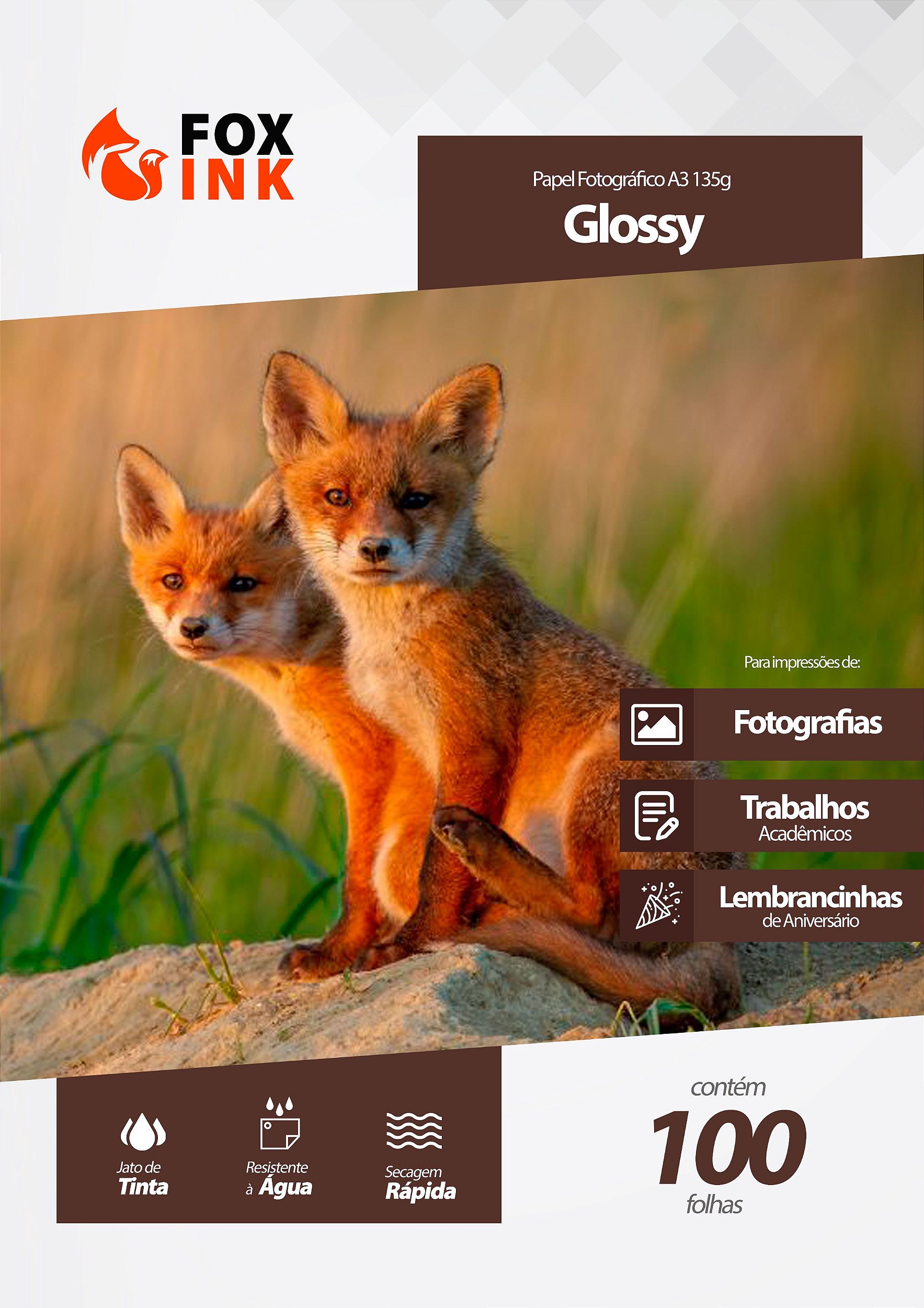 Saiba mais sobre o Papel Fotográfico Glossy A3 135g Fox Ink 100 Folhas: